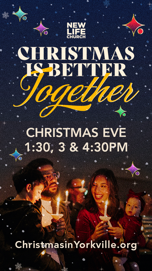 Christmas is always a special time here at New Life Church! NLC will have three identical worship services on Christmas Eve. We will sing Christmas Carols together, enjoy candlelight worship, and remember the real reason for the season – the birth of our Savior, Jesus Christ. Childcare will be available for infants - preschool at all services.